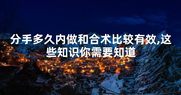 在一段感情当中,很多人都非常的珍惜和投入这段爱情,但有时候两个人之间的分歧总是会让彼此产生很大的误会。所以很多人就会选择去挽回自己的感情。但是如果不能够很好的经营自己的感情的话,那么就很容易造成双方的矛盾升级。很多人都会问到一个问题,那就是分手多久内做和合术比较有效?