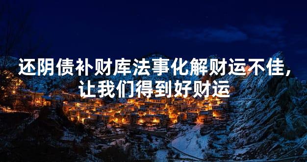 还阴债补财库是要与符咒、咒语、疏文想结合,是帮助我们命理中的阴阳财库补圆满,然后就能帮助我们命中的财运不利,这个时候就能轻松改变我们的财运了,一般还阴债补财库法事这种是针对我们财运不利的状况,能够给我们锦上添花,让我们获得好运势。