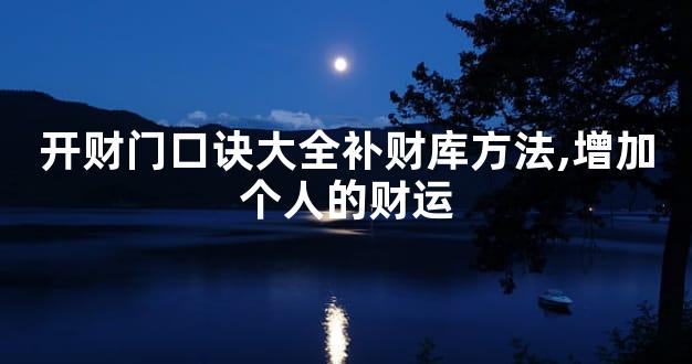 道教中有可以帮助我们开财运、催财的一种秘法,那么就是开财门,对于在风水中开财门口诀大全补财库有了解多少呢?现在我们就来看关于开财门的口诀,现在一起来看一看吧。
