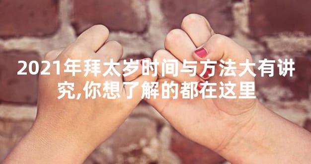 以上就是2021年拜太岁时间、方法以及作用,希望对大家能有所帮助。太岁会在影响我们的运势,若是生肖合太岁,那么是有利的,若是生肖犯太岁,那么是不利的,更应该好好拜太岁以求得庇佑了!