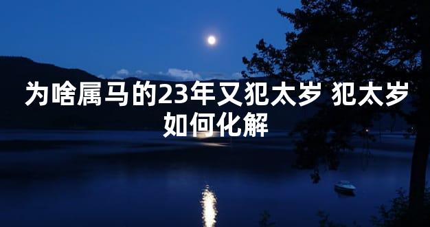 2、为啥属马的23年又犯太岁? 对于生肖属马的人来说,每十二年会有一位太岁主宰这个生肖。而23岁是生肖属马的第二个太岁年,因为22岁的时候还是在走马运年。所以,23岁比较特殊,因为既受到上一位太岁的影响,又受到新的太岁的影响。这种十二年里面两位太岁交替的情况,会使得23岁的时候很容易遇到一些意外的事情,比如突然换工作、恋爱失败等等,所以属马的人一定要特别注意。