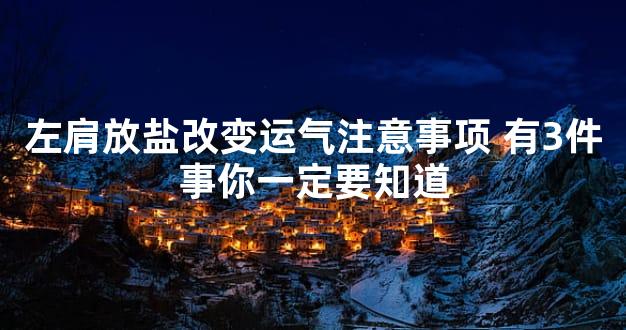 盐具有清洁纯净的作用,因此左肩放盐改变运气主要是人犯了晦气的时候使用的。不小心打碎了镜子,不小心杀生了,不小心碰见了血光的时候,可以用盐来去晦气改变运气。针对其他的情况盐对提升运气上没有太大的作用,因此需要注意。