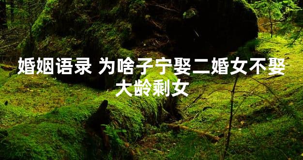 一、为啥子宁娶二婚女不娶大龄剩女