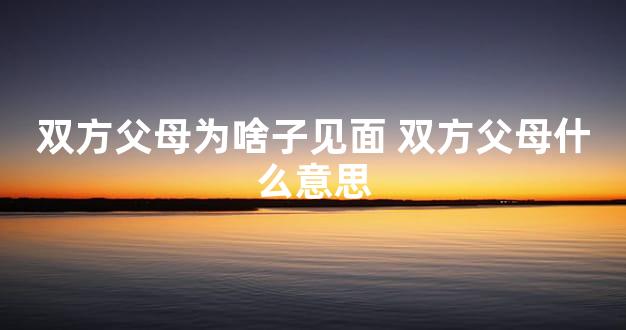 双方父母为啥子见面 双方父母什么意思