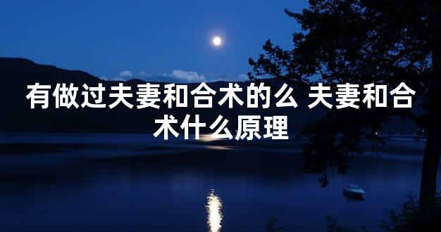 有做过夫妻和睦方法的么?做过夫妻和睦方法的人是很多的。如果你希望自己的婚姻问题可以快点解决,你可以借助于这种方法。