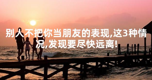 以上3种情况就是别人不把你当朋友的表现了,相处过程中发现对方占有其中一种,就要尽快远离,这样的人是不值得深交的。那么大家还知道别人不把你当朋友的表现有哪些吗?可以在下方留言分享!