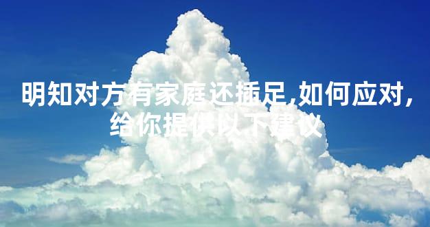 面对明知对方有家庭还插足的情况,如果作为第三者插足的受害者,我们要调整好心态,明确自己的地位,确立自己的优势,这些都是相当重要的。如果我们还想要挽回这段感情那么就要明确对方是否还会犯这样的原则性错误,因为这是一件相当严重的事情,如果对方并不能保证,那么还是建议离开他,这样对自己来说是一种比较合适的选择。