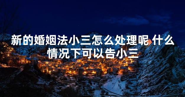 新的婚姻法小三怎么处理,在《民法典》里,只明确指出配偶不能与他人同居,禁止重婚,但是没有对婚外情人有明确的处理规定,只有当小三明明知道那个人有老婆还和他结婚的话,才能告她重婚罪,处二年以下有期徒刑。