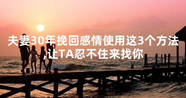 夫妻30年挽回感情说起来容易,做起来难,重要的是需要坚持,感情的破裂都是因为很多生活中的小问题没有解决导致的,试着去跟对方沟通,一起来解决这些问题,就能挽回成功。