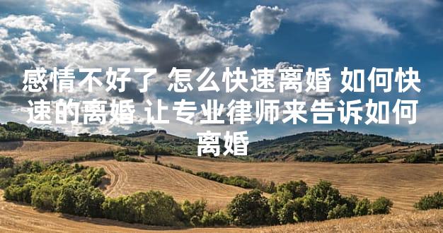 婚姻上面感情也是很重要,当感情已经消失了,就会想要进行离婚,不想再纠缠下去。以上是关于感情不好了 怎么快速离婚,我们可以进行参考了。近期想要离婚的话,大家可以向专业的律师进行咨询了解,就可以清楚的来了解离婚。