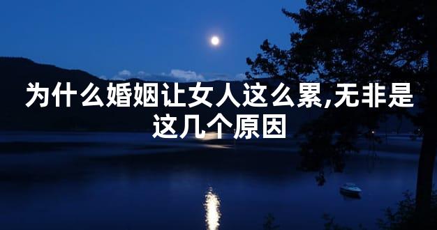 好了,上面就是关于为什么婚姻让女人这么累的相关内容,希望对大家有所帮助。