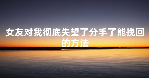 帮忙,进行专业的指导,更有利于挽回。女友对我彻底失望了分手了能挽回么?怎么挽回?男生应该多掌握一点挽回女朋友的办法,不仅能找到最适合自己的帮忙挽回前女友,还可以在和自己的女友吵架,发生矛盾的时候及时处理问题,避免发生感情危机。这样你们的关系才会更长久,你们的爱情也会走向幸福。