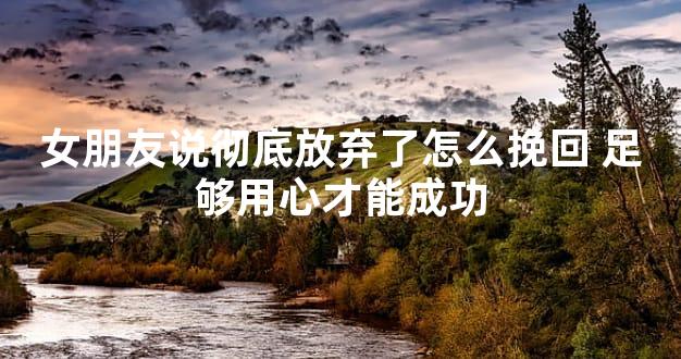 要说女朋友说彻底放弃了怎么挽回,可以参考以上这三个方法,必要时可以结合起来使用,会有意想不到的收获。挽回爱情关键是用心,让对方感受到你的真心,用真心换真心,才能真正做到让对方回心转意,跟你重新在一起。